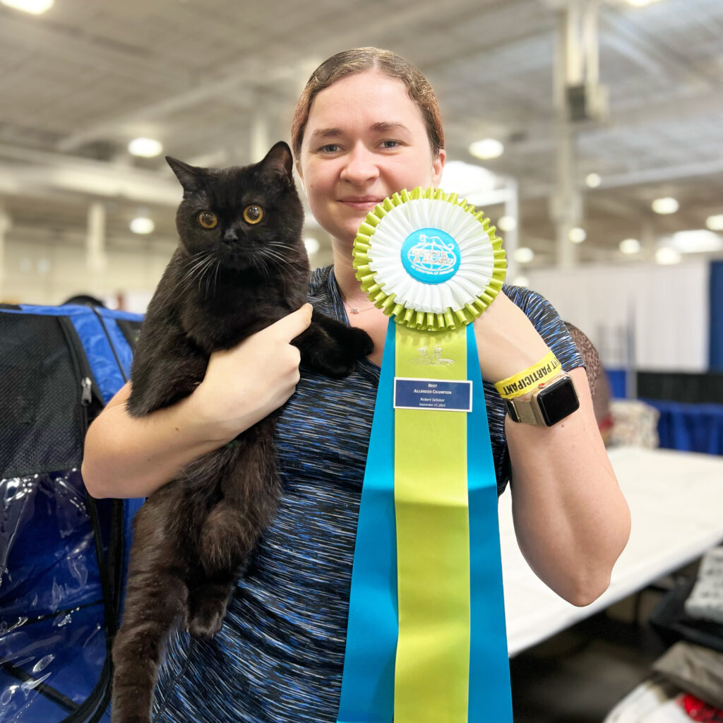 Title: CCA – Champion, TICA – Champion. 1st Best Black British Shorthair of the year 2024.
